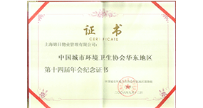 城市環(huán)境衛(wèi)生協(xié)會(huì)華東地區(qū)第十四屆年會(huì)紀(jì)念證書
